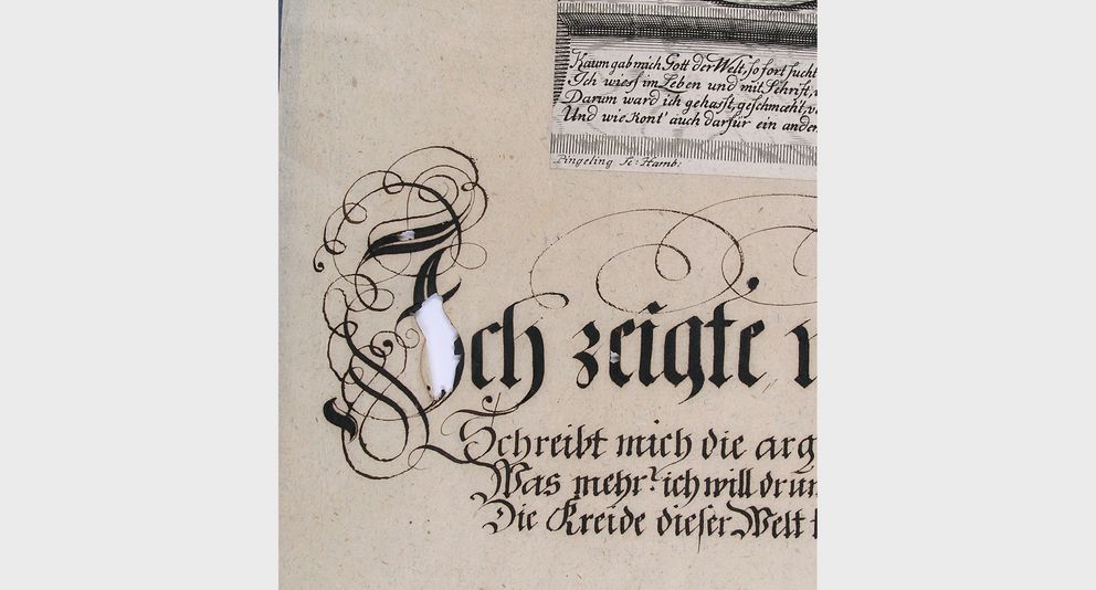 Die Böttichersche Porträtsammlung ist in ihrer Erhaltung gefährdet! Zahlreiche Blätter weisen Schmutz- und Gebrauchsspuren, eingerissene und geknickte Ränder, Fehlstellen und Verwellungen auf. Doch besonders der Tintenfraß, der die liebevoll gestalteten Verse Böttichers angreift, hat zum Teil schon so dramatische Spuren hinterlassen, dass die Schriften kaum noch lesbar sind. Sie müssen restauriert werden. Den finanziellen Aufwand zur Rettung der Sammlung kann eine öffentliche Einrichtung nicht allein tragen. Daher hat die Bibliothek die Aktion "Bilderschaden - Schadensbilder" ins Leben gerufen.